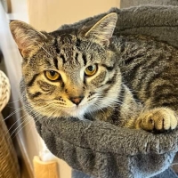 Le beau Izak est un jeune homme en excellente santé. Avec son beau pelage tigré, son noble visage et ses superbes yeux ambrés au regard intense et captivant, il saura vous enchanter au premier coup d’oeil!