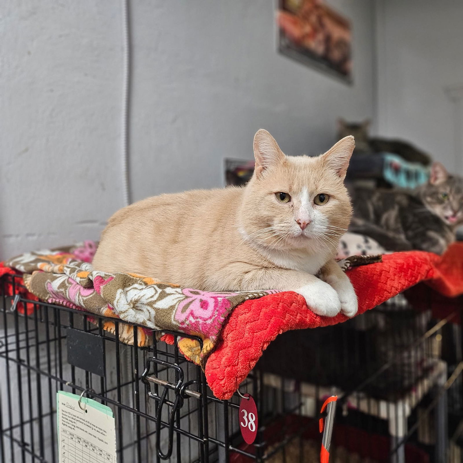 Il est adorable. Il semble bien s’entendre avec les autres chats de sa pièce et pourrait vivre avec des enfants.