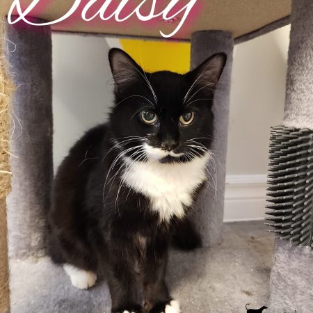 Elle s’entendrait bien avec d’autres chats respectueux et probablement aussi avec un chien.