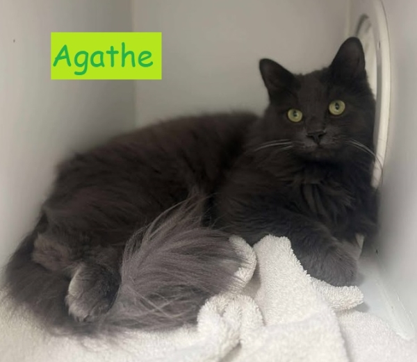 Voici Agathe! Une belle chatte aux yeux verts! Une datte la nourrit dehors pendant 2 mois. Puisqu’elle n’a pas trouvé sa maison...