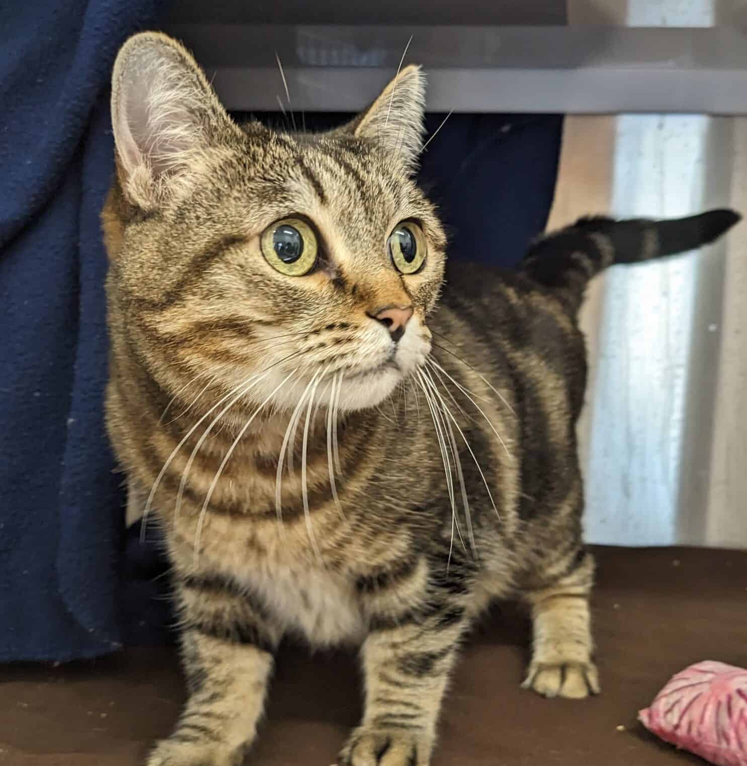 Avec son apparence unique, ses petites pattes courtes et son regard expressif, elle fait fondre tous les cœurs dès la première rencontre. Mais au-delà de son physique attachant, c’est aussi une minette au caractère agréable et équilibré.