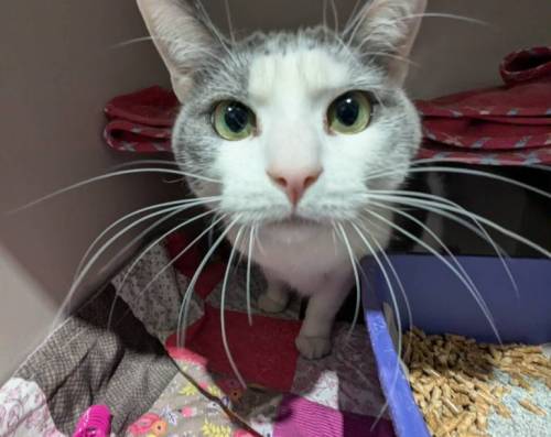 « Je suis une jeune chatte très gentille et affectueuse. Vous n’avez qu’à me regarder pour que je commence à ronronner. Je cherche une famille pour la vie qui pourra me donner tout l’amour que je mérite! Mon niveau d’énergie est modéré.