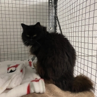 une charmante chatte à poils longs qui a récemment été amenée à notre refuge en tant qu’animal errant. Elle est âgée d’environ 13 ans.