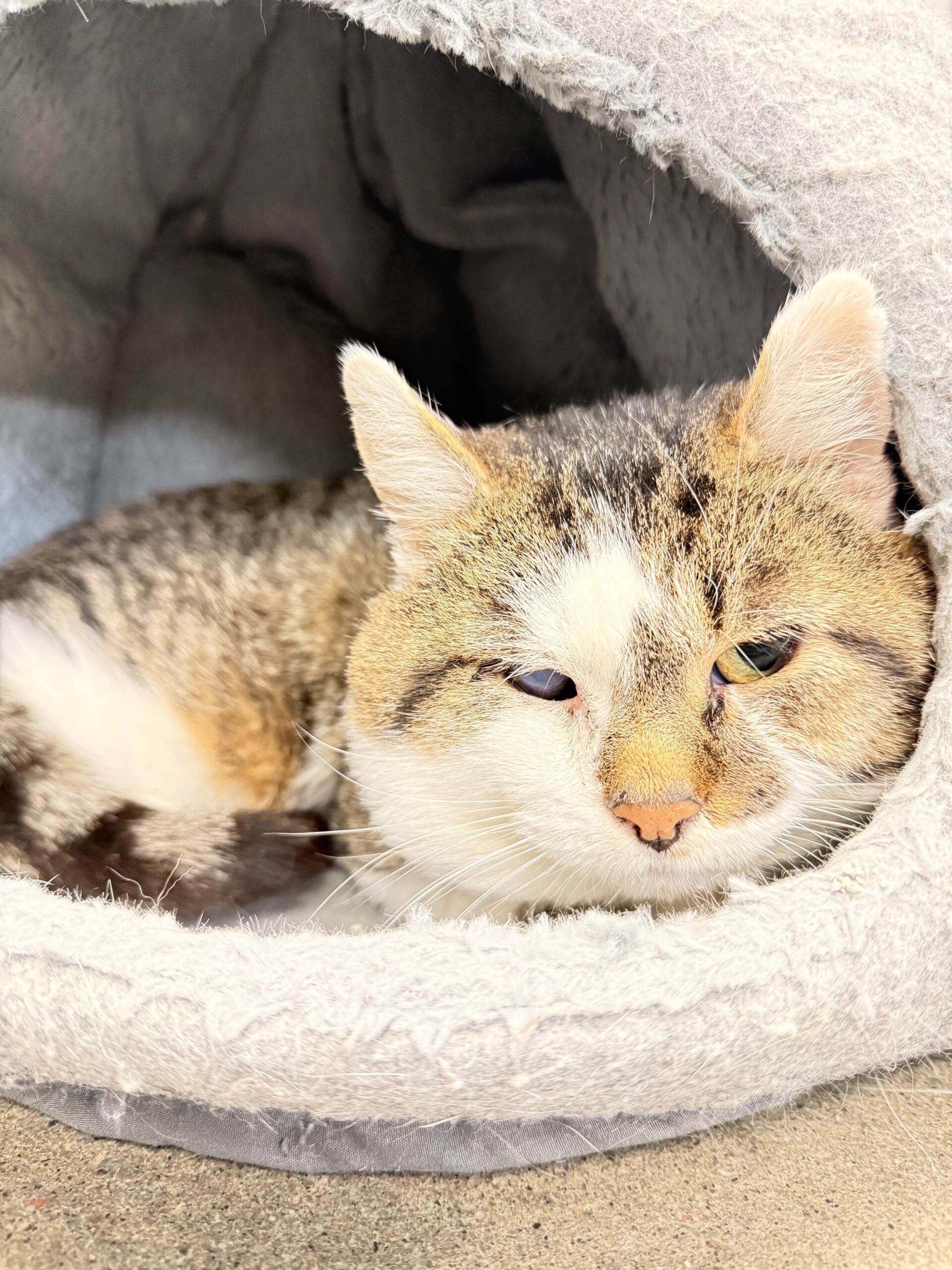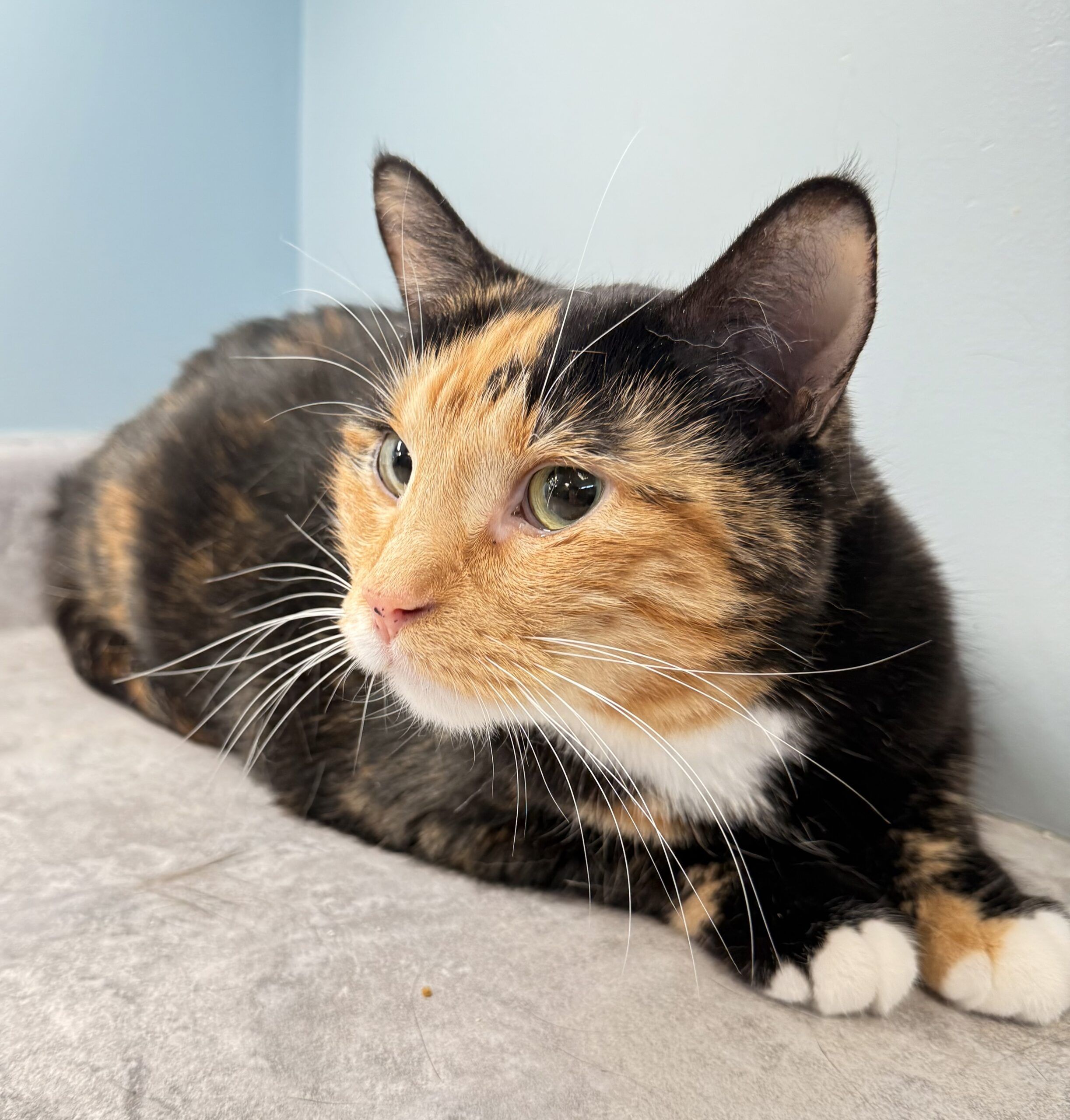 Elle est douce et délicate. Elle roucoule tendrement et adore les caresses. Elle s’entend bien avec les autres chats et est curieuse envers les enfants.