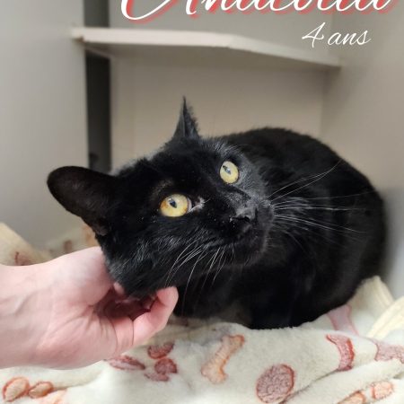 Maintenant il est devenu un beau garçon, qui ne cesse de faire des progrès. C’est un chat super calme, super gentil. Il est encore très craintif du mouvement autour de lui, mais dès que nous sommes assis ou couchés, il sort de sa cachette pour venir se faire flatter et dormir directement sur sa maman d’accueil la nuit. Il adore se faire brosser et jouer seul avec ses petites souris.