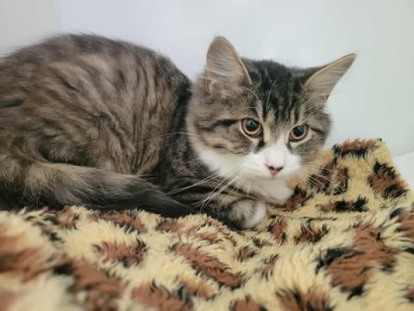 Ce petit cœur est encore un peu nerveux : face au stress, il peut cracher pour exprimer sa peur, mais ne vous laissez pas impressionner… c’est simplement sa manière de dire qu’il a besoin de temps et de douceur. Avec de la patience, il se révèle être un chaton gentil qui mérite qu’on lui donne une chance.