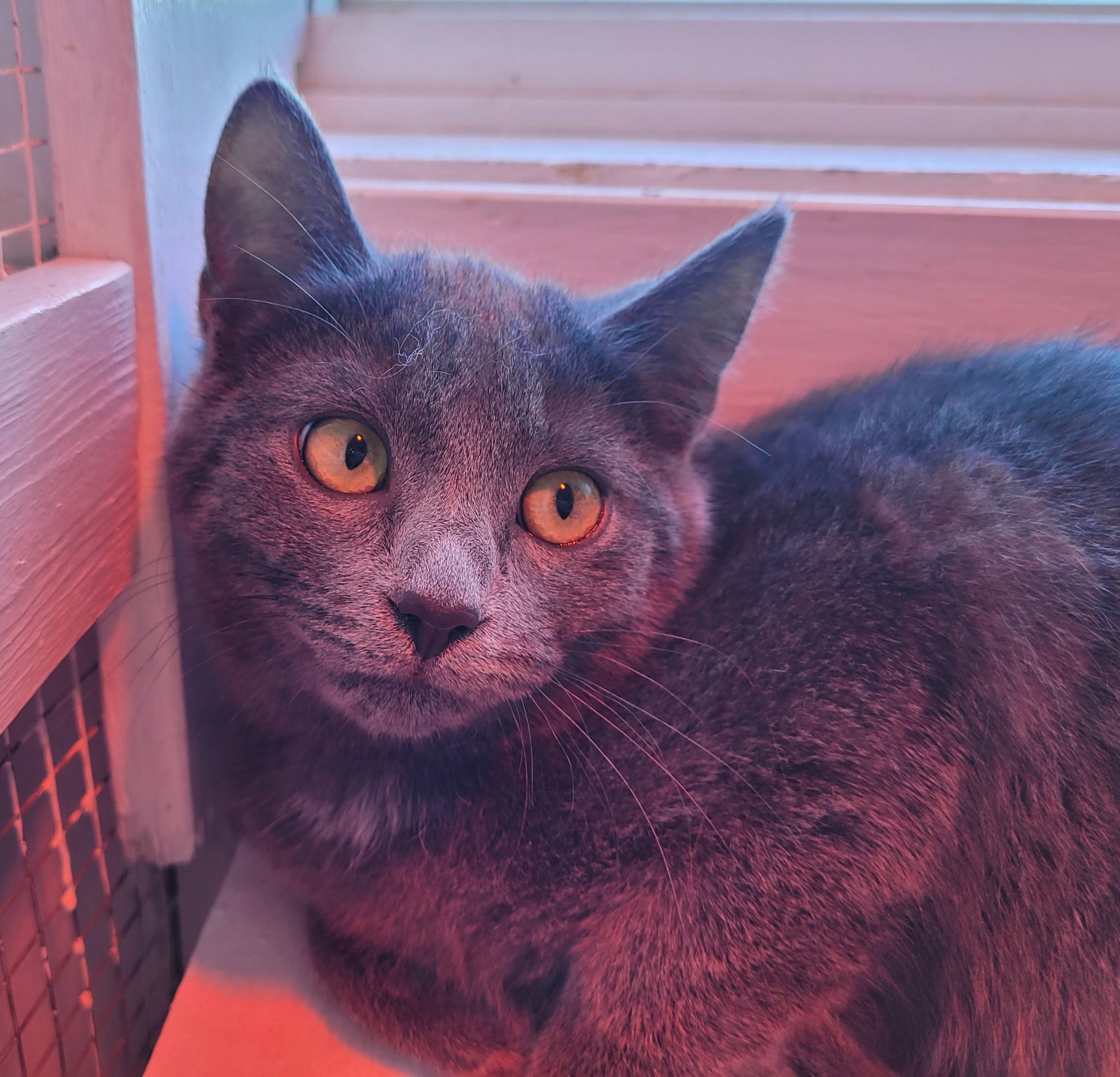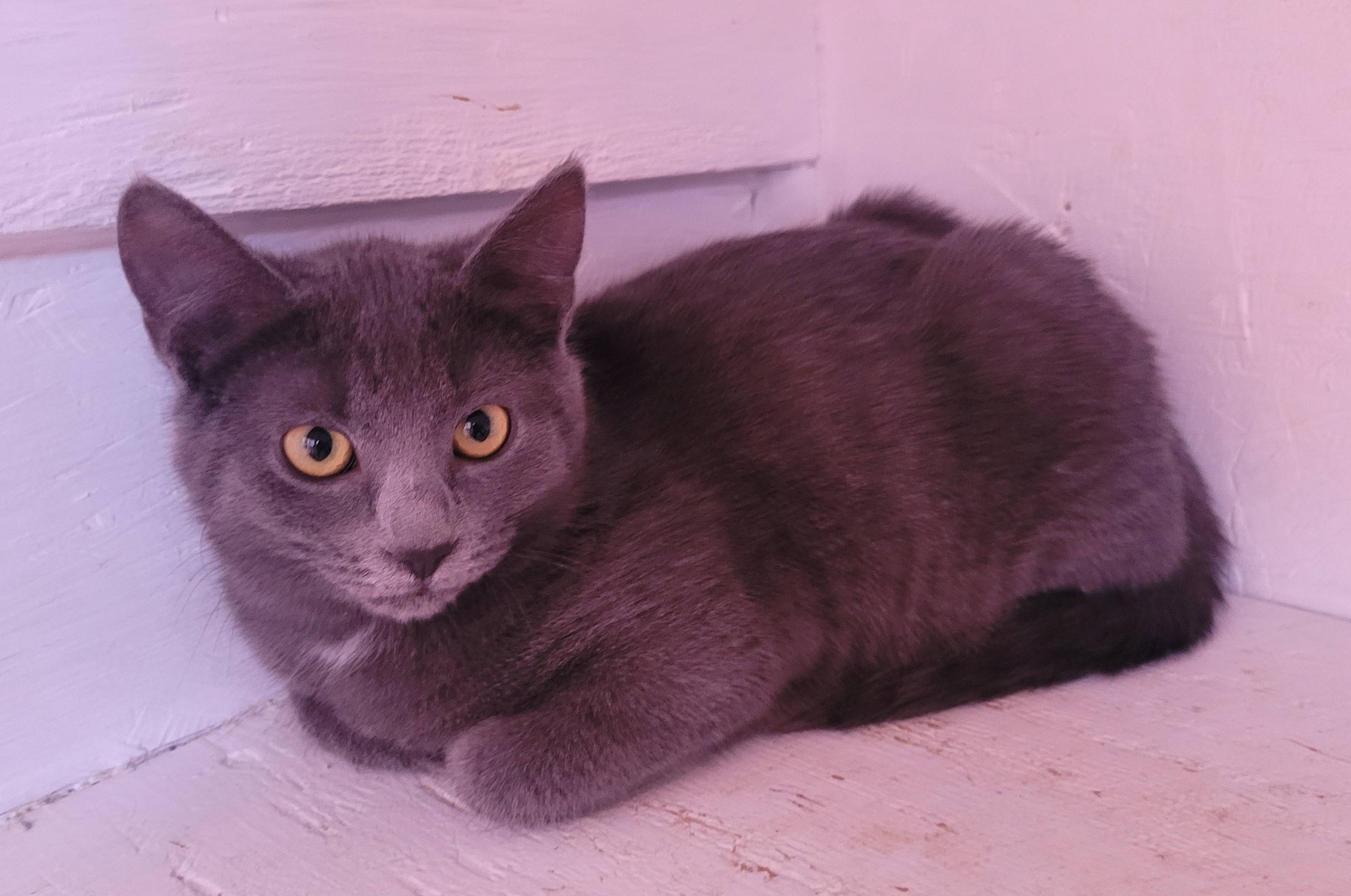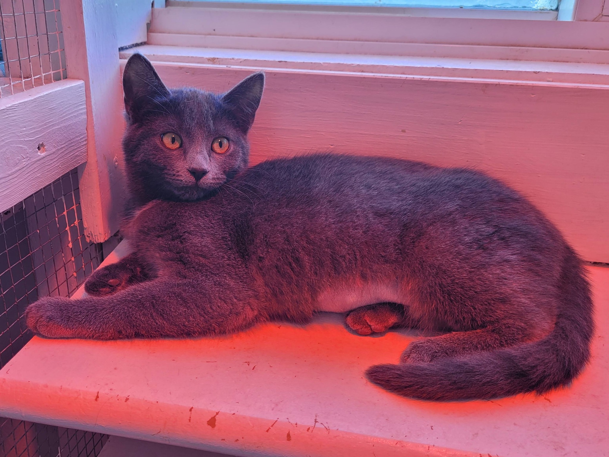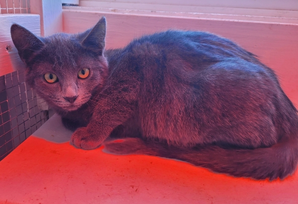 Elle s’entend très bien avec les autres chats. Elle est toute grise à poils court avec de magnifiques yeux. C’est un petit trésor à découvrir. Un chaton pour qui on va favoriser un milieu plus calme idéalement.