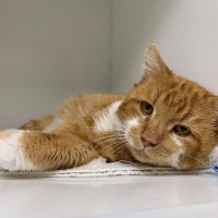Présentement en famille d’accueil, Beethoven a besoin de moments de tranquillité. Il a été testé positif au FIV (virus de l’immunodéficience du chat) et à la rhinotrachéite chronique.