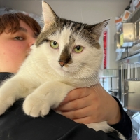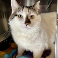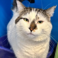 Belle-Pupuce présente un doux pelage blanc et tabby, de sublimes yeux verts-dorés en amande et au adorable petit museau tacheté. Cette beauté est en très bonne santé malgré qu’elle soit un peu en surpoids. Cela n’enlève rien à son charme fou; il ne suffit que de quelques instants avec elle pour tomber follement en amour!