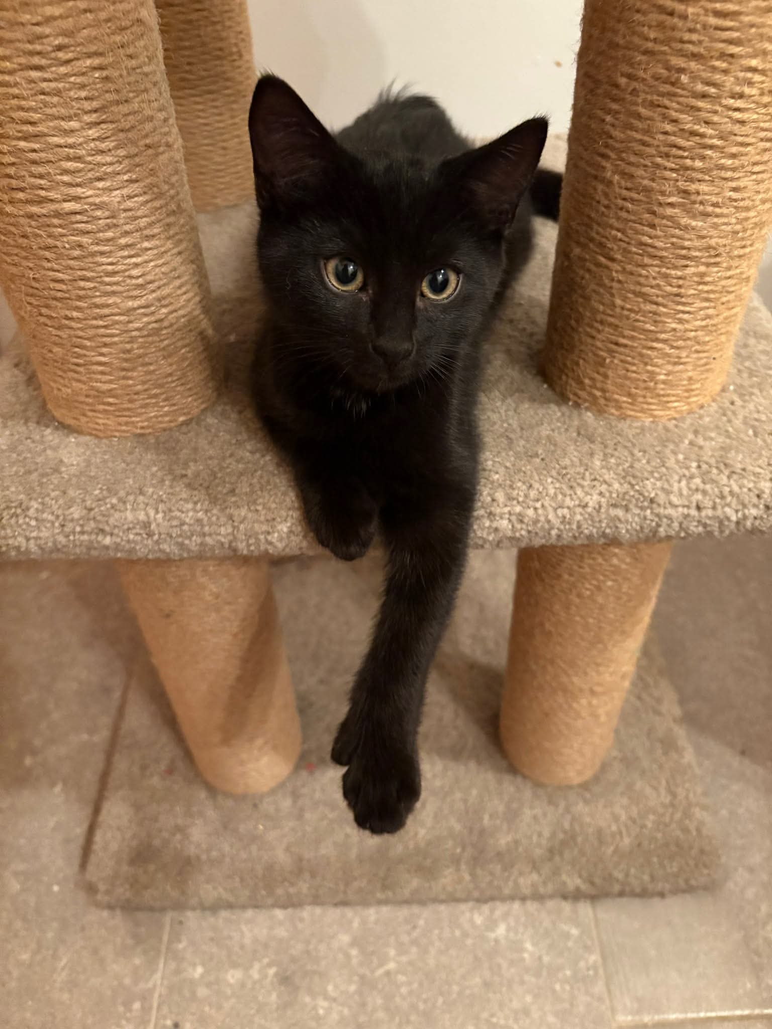 J’ai 2 sœurs et 2 frères. Ma maman nous a chouchoutés et nous a montré à être super propres – je n’ai jamais fait de dégât! J’utilise de façon diligente mon griffoir dans mon arbre à chat.