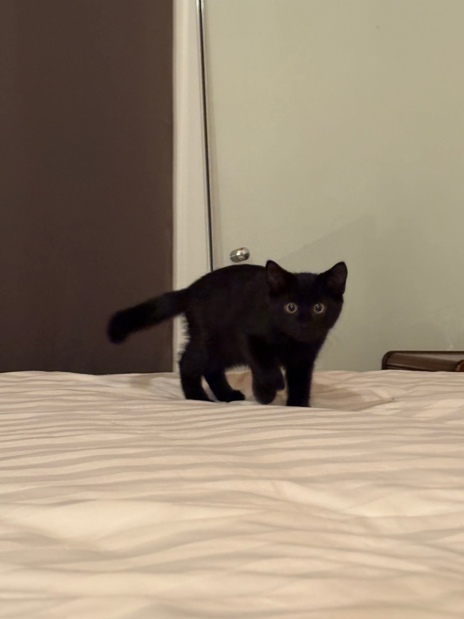 Je suis le petit philosophe de la portée. Lorsque ma maman d’accueil ouvre la porte de notre chambre, je laisse mes frères et sœurs turbulents passer en premier. J’aime prendre mon temps, sortir lentement, puis m’approcher de mes humains.