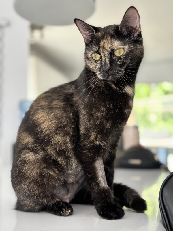 Il est maintenant temps pour moi de me trouver une famille qui va m’aimer et m’offrir un toit pour la vie! Je suis une chatte super affectueuse! J’aime recevoir des câlins, j’aime la présence de mon humain et je suis ma famille d’accueil partout. Lorsqu’elle travaille à la maison, je dors sur son bureau et lorsqu’elle quitte la maison, je vais dormir sur le bord de la fenêtre pour attendre son retour à la maison. Je suis parfaite comme ça moi!