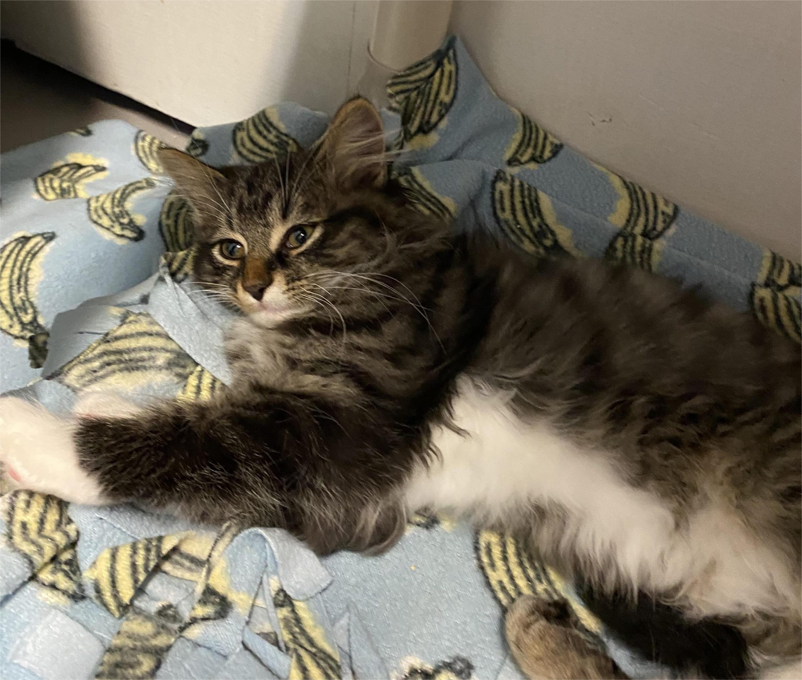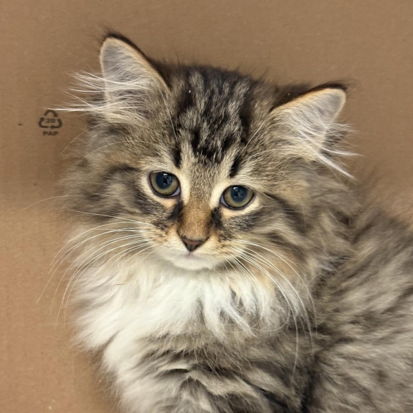 Binx a été trouvé dehors avec sa mère et ses quatre frères à Montréal, puis ils ont été amenés à notre refuge. C’est un très beau chat à poils longs qui adore jouer. Ses quatre frères et leur mère Bianca sont également disponibles à l’adoption.