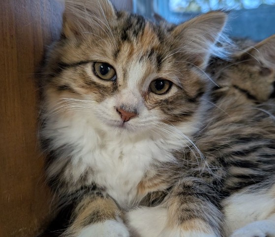Bipp est arrivée à notre refuge en tant que chaton errant après avoir été vue à plusieurs reprises errant sur un terrain de golf local. Heureusement, les personnes compatissantes qui ont remarqué Alphonse (également disponible à l’adoption) ont également remarqué Bipp et ont pu la piéger et nous l’amener il y a quelques semaines.
