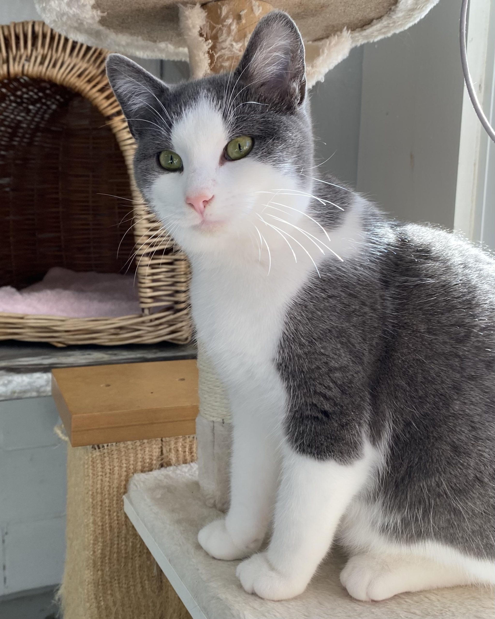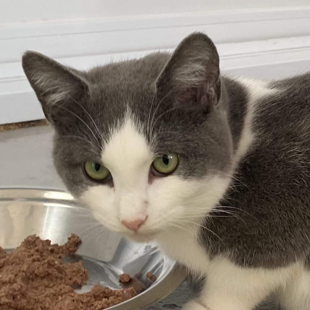 Élevé avec ses frères et sœurs, il est bien socialisé et devrait s’entendre avec d’autres chats.