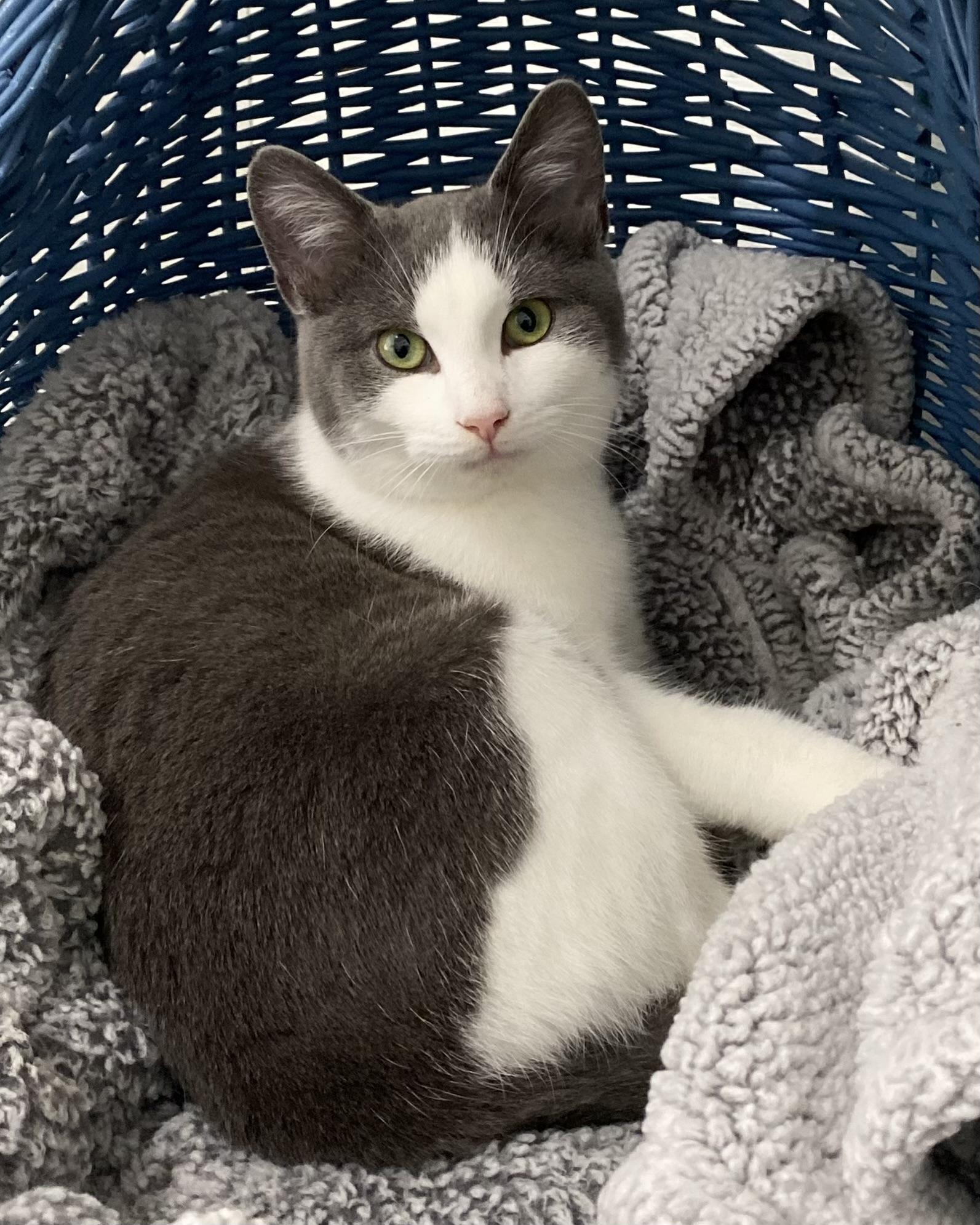 Bluey et ses trois frères et sœurs ont été sauvés de la vie en extérieur. C’est un chaton joyeux et joueur avec un caractère très affectueux. Bluey est en bonne santé, amical, doux et très câlin.