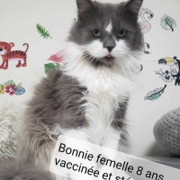 La belle Bonnie est très calme et aime la compagnie des autres chats. Timide au début, elle devient affectueuse une fois en confiance.