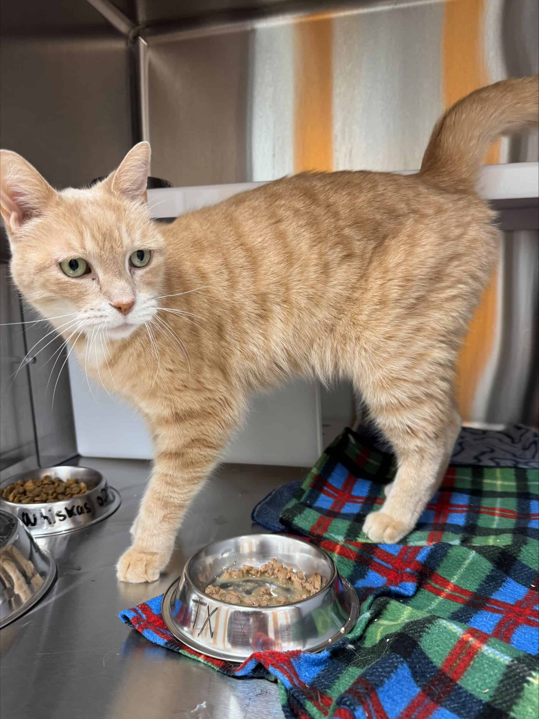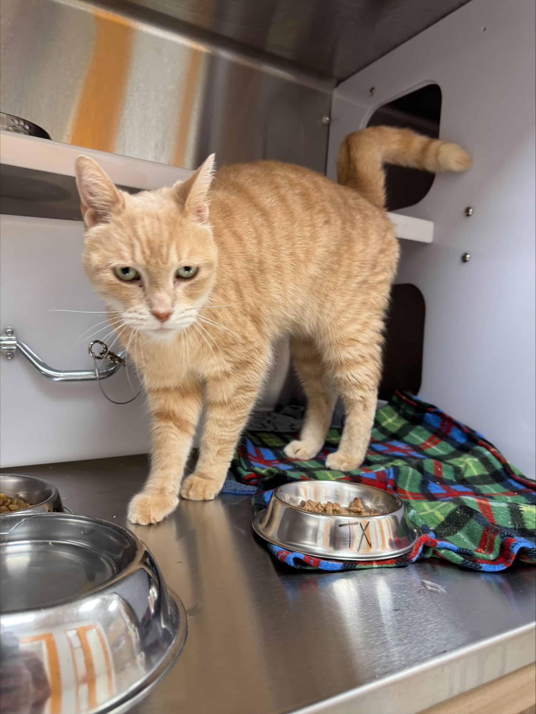 Un joli mâle d’expérience âgé de 12 ans, dégriffé aux pattes avant, aussi doux que colleux.