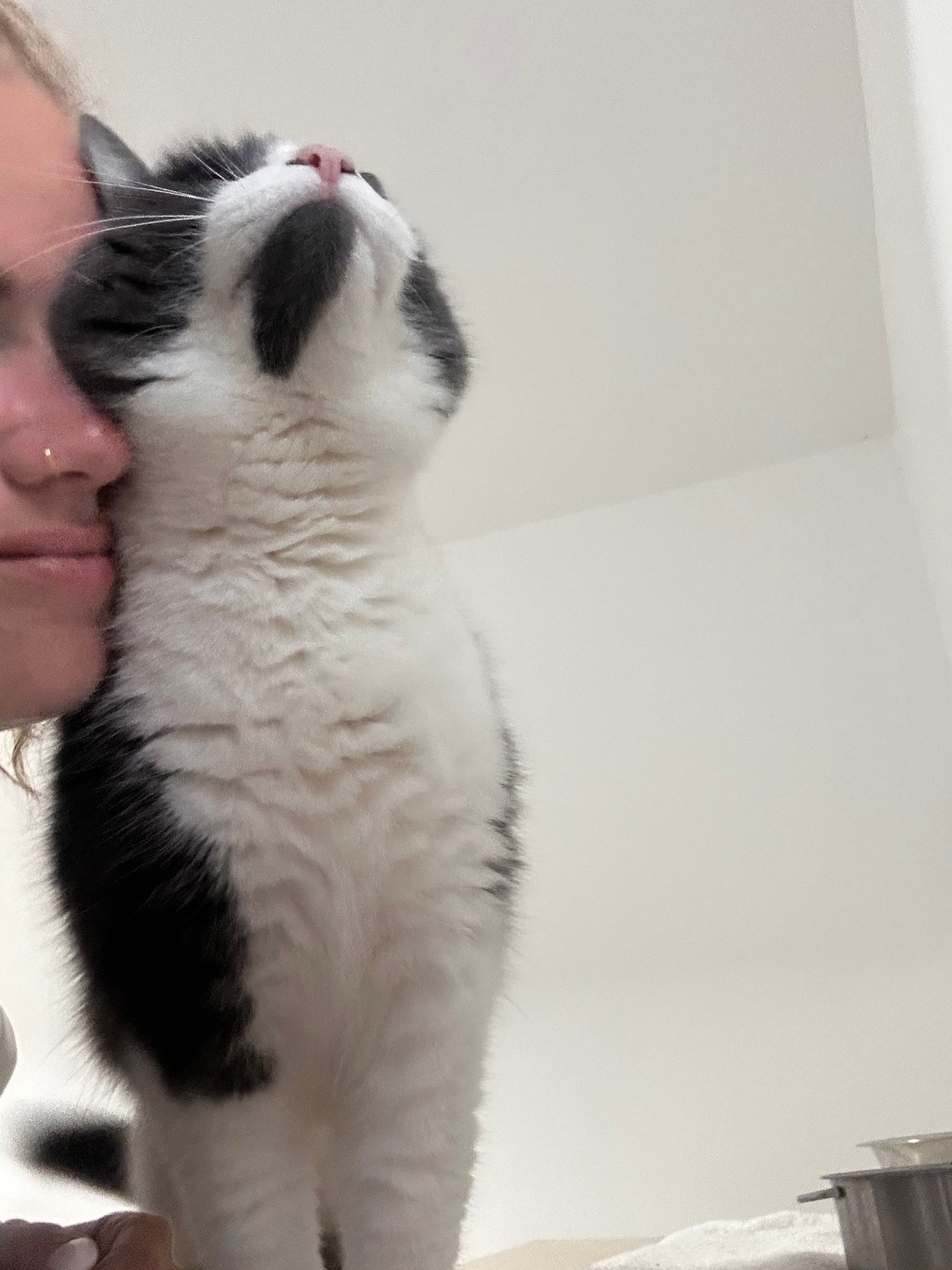 MIAULEMENT : elle miaule pour accueillir ses humais d’un miaulement léger.