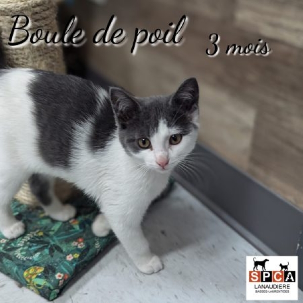 Boule de poil est une chatonne charmante et pleine de vie ! Grâce à sa jeunesse, elle s’adaptera facilement à tout foyer. Boule de poil est très affectueuse et aime interagir avec d’autres chats. Venez la rencontrer et laissez-vous séduire par son caractère sociable et joueur !
