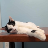 Voici Brad! Un magnifique mâle noir et blanc à poil court âgé de 4 mois.