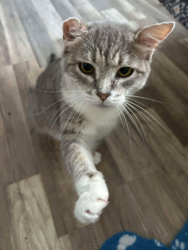 Une jeune chatte d’environ 1 an, douce et très calme, qui rêve enfin d’un peu de tranquillité et d’amour pour elle-même !