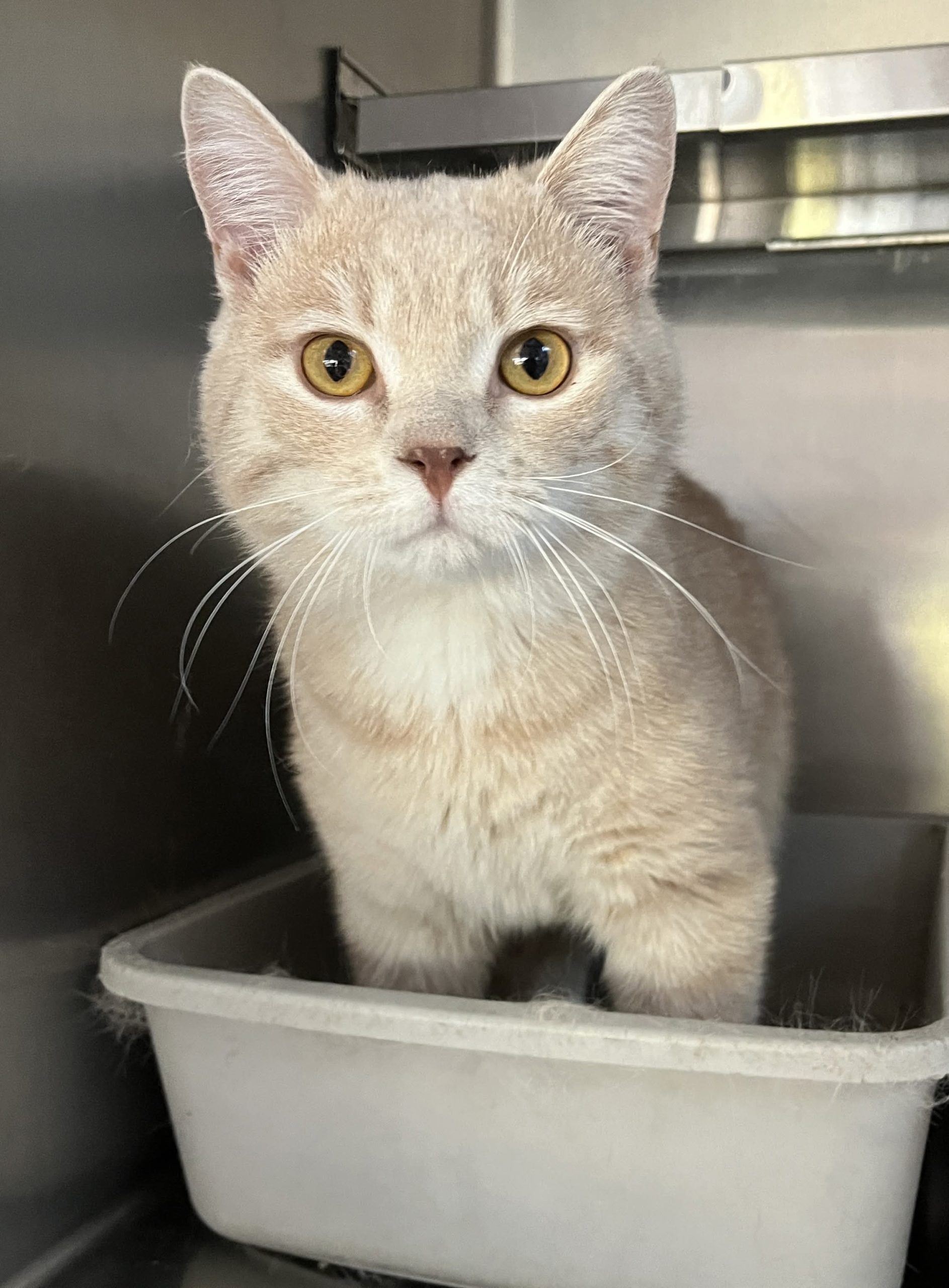 Cacao et son frère Chili seraient nés dehors vers la fin du mois de mai 2025. Voyant les chatons gambader près des maisons mais aussi près des routes. Il devenait urgent de les mettre en sécurité. Ils furent finalement trappés en octobre et gardés chez une gentille dame qui a agit comme famille d’accueil. Les deux adorables rescapés ont été emmenés au refuge fin janvier 2026 afin d’être stérilisés et mis à l’adoption dans l’espoir de leur trouver de bonnes familles.