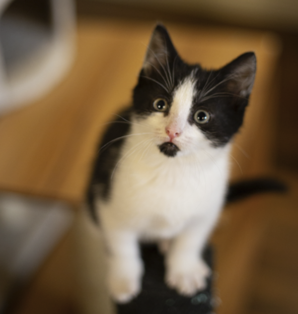 Ses humains temporaires l’appellent « Capu »! Elle fait souvent rire sa famille d’accueil avec ses grands yeux et ses simagrées. Elle adore se cacher dans des endroits insolites et faire des drôles d’acrobaties.