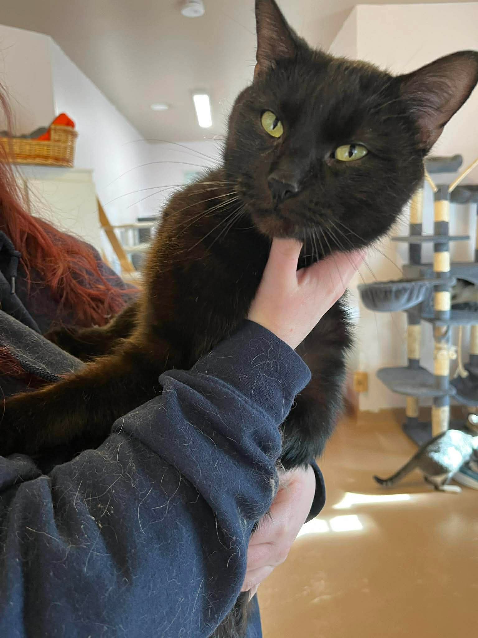 Avis aux intéressés, je suis à la recherche d’adoptants aimants et attentionnés qui veulent un compagnon félin espiègle et affectueux qu’ils pourront dorloter à profusion! Avec moi, Carbone, votre mini-panthère noire préférée, vous ne vous ennuierez jamais et je promets de vous aimer jusqu’à mon dernier souffle!