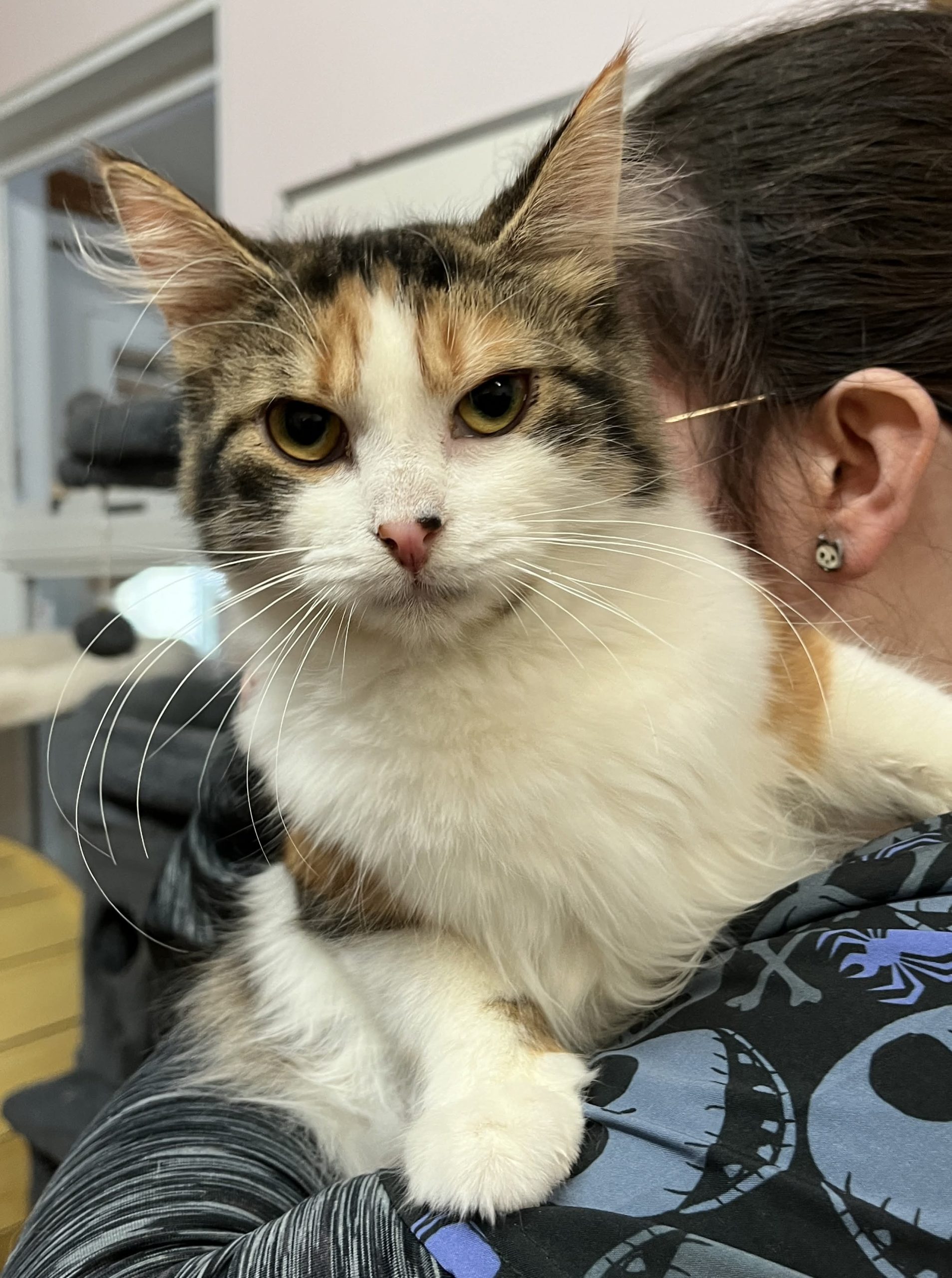 Nous avons reçu un appel pour un sauvetage de chats se trouvant dans des conditions très difficiles dans un appartement. Ainsi, Carlotta et 7 autres chats et chatons furent emmenés au refuge au tout début de janvier 2026 afin de les soigner et leur donner une chance pour un avenir meilleur. Cette jolie rescapée est désormais prête à tourner la page sur son cruel passé et à découvrir les joies d’un foyer aimant.