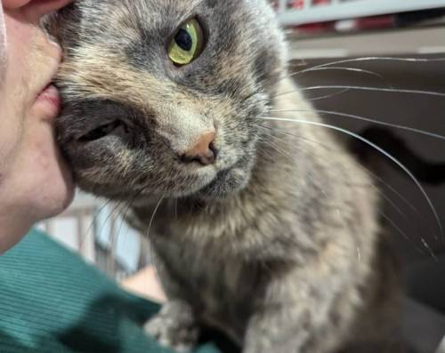 Aujourd’hui, grâce au travail de l’équipe de socialisation du refuge, Charlot se laisse flatter! C’est plus facile de le faire quand on a un tube de Creamy à la main, mais il y a de plus en plus souvent des moments où il accepte les caresses même sans nourriture. Il raffole du Creamy et des Greenies. Il grimpe sur les genoux et nous laisse lui faire des bisous pendant qu’il mange son petit tube de Creamy. Par contre, quand le tube est vide, c’est aussi souvent la fin des câlins avec lui!