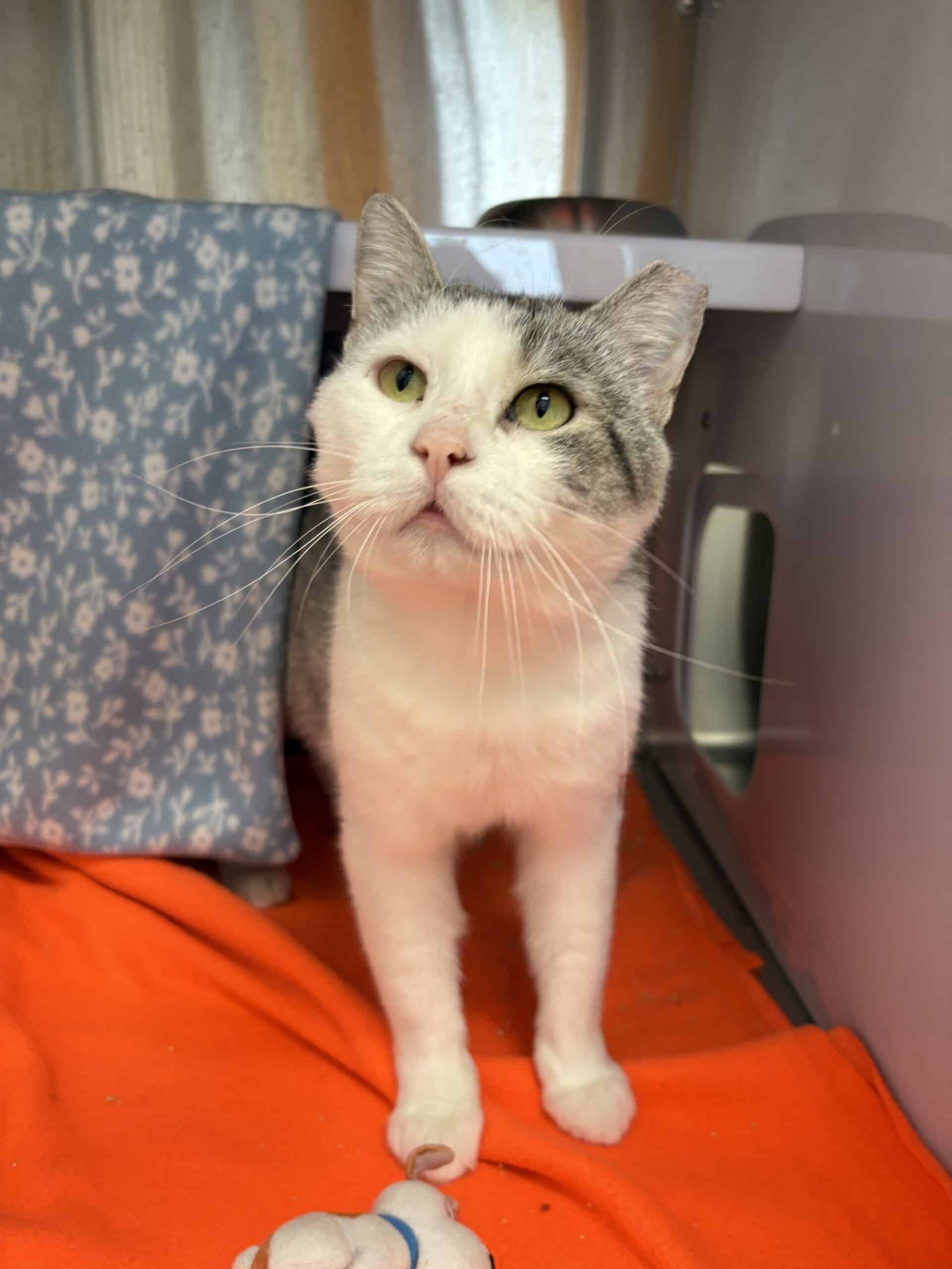 une chatte douce et affectueuse qui saura rapidement conquérir votre cœur. À 2 ans, elle a déjà un caractère bien établi : elle est gentille, sociale et adore recevoir de l’attention. Caressez-la, elle se laissera flatter avec plaisir!