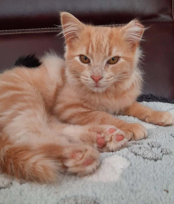Né en juillet 2025, ce chaton est décrit comme étant aussi doux que la soie. En plus d’être beau à croquer, ce petit ange ronronne comme un moteur.