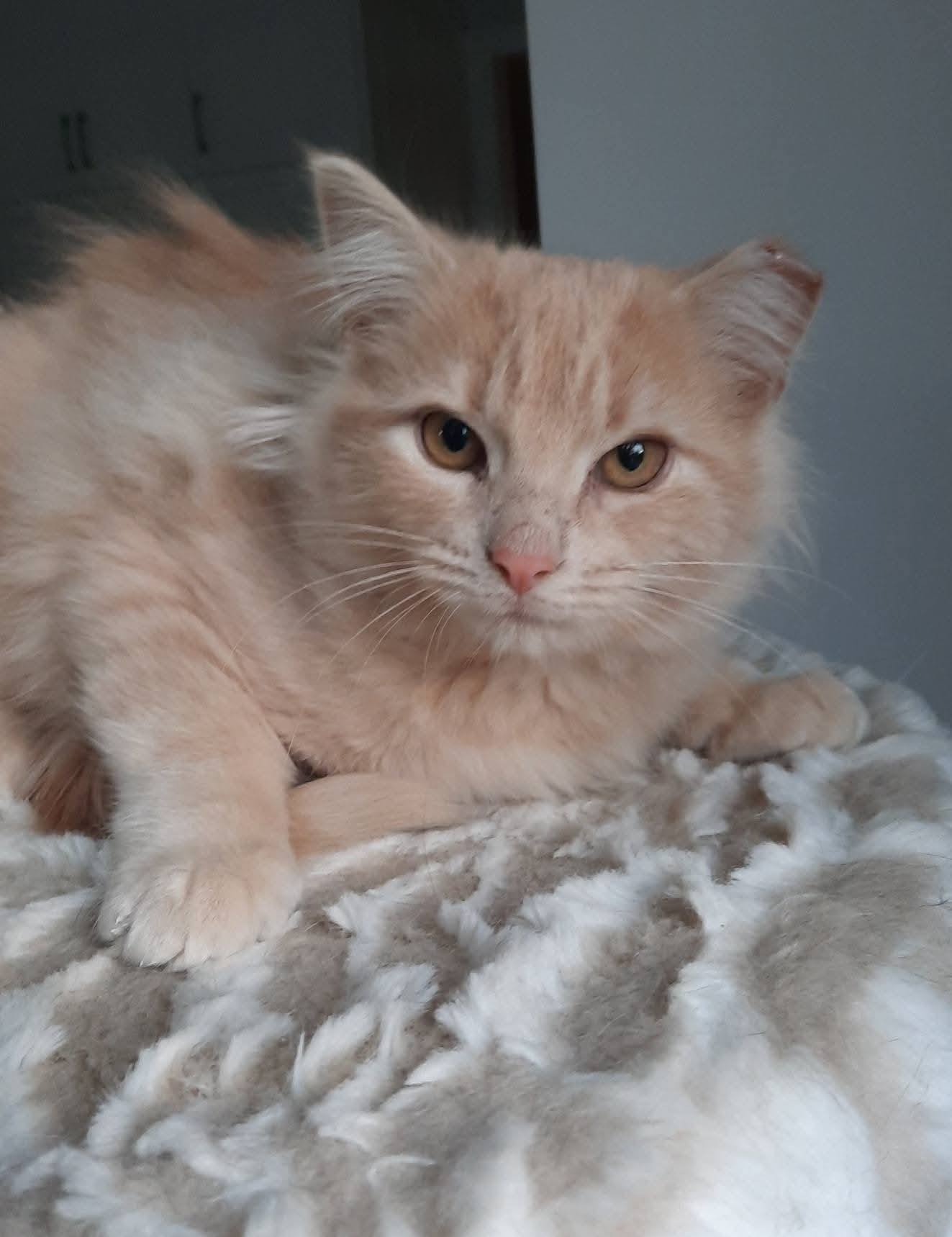 Né en juillet 2025, ce chaton est décrit comme étant aussi doux que la soie. En plus d’être beau à croquer, ce petit ange ronronne comme un moteur.