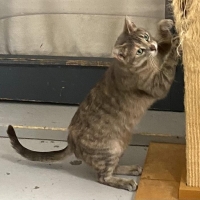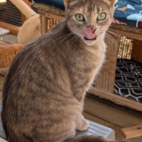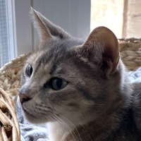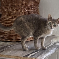 China est arrivée chez nous avec ses chatons après avoir été sauvée d’une situation où quelqu’un ne pouvait pas s’occuper de tous les chats qu’il avait. C’est une petite chatte tabby tricolore diluée. Son âge sera confirmé lorsqu’elle ira chez le vétérinaire mais elle semble avoir environ 1 à 2 ans. Elle pourrait être la mère des trois chatons Lou, Linus et Léonie, âgés de 10 semaines. Nous pourrons confirmer quels chatons sont les siens après qu’elle soit avec nous un peu plus longtemps. Elle est arrivée chez nous avec une autre mère, Asia, et ses 4 chatons.