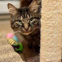 Coco ronronne tout le temps, il aime se faire cajoler et se coucher sur nous. Coco jase quand on lui parle, il se laisse prendre et il est très affectueux. Il est absolument parfait et il a beaucoup d’amour à donner!