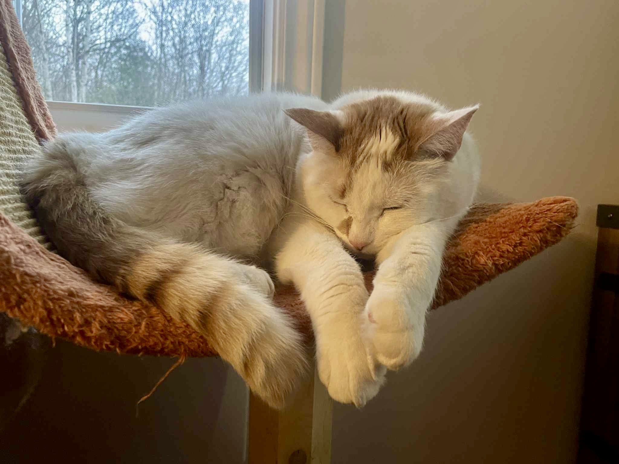 DODO : il aime se coucher dans des endroits frais (sous-sol, sous le lit) ou sur son arbre à chat.