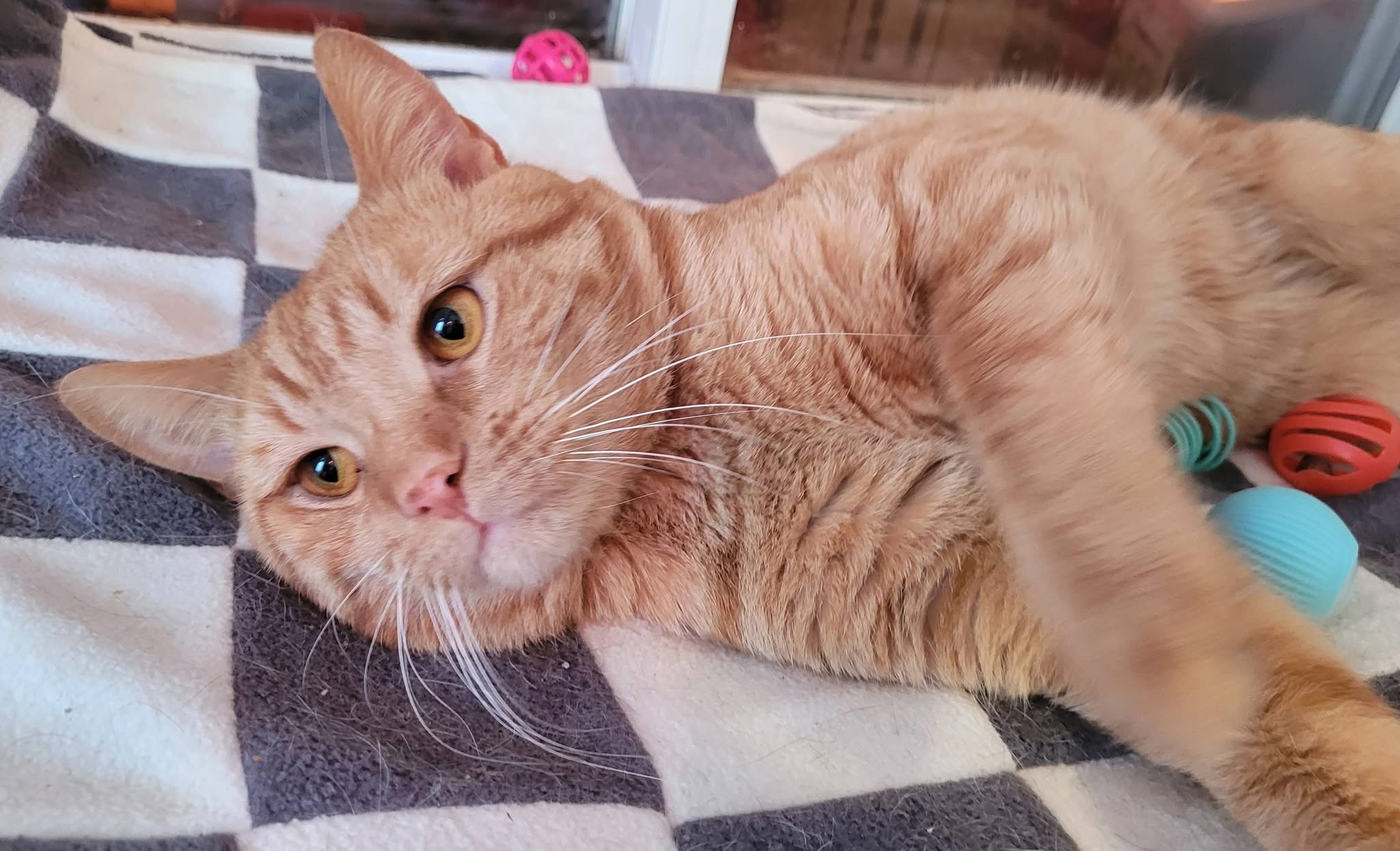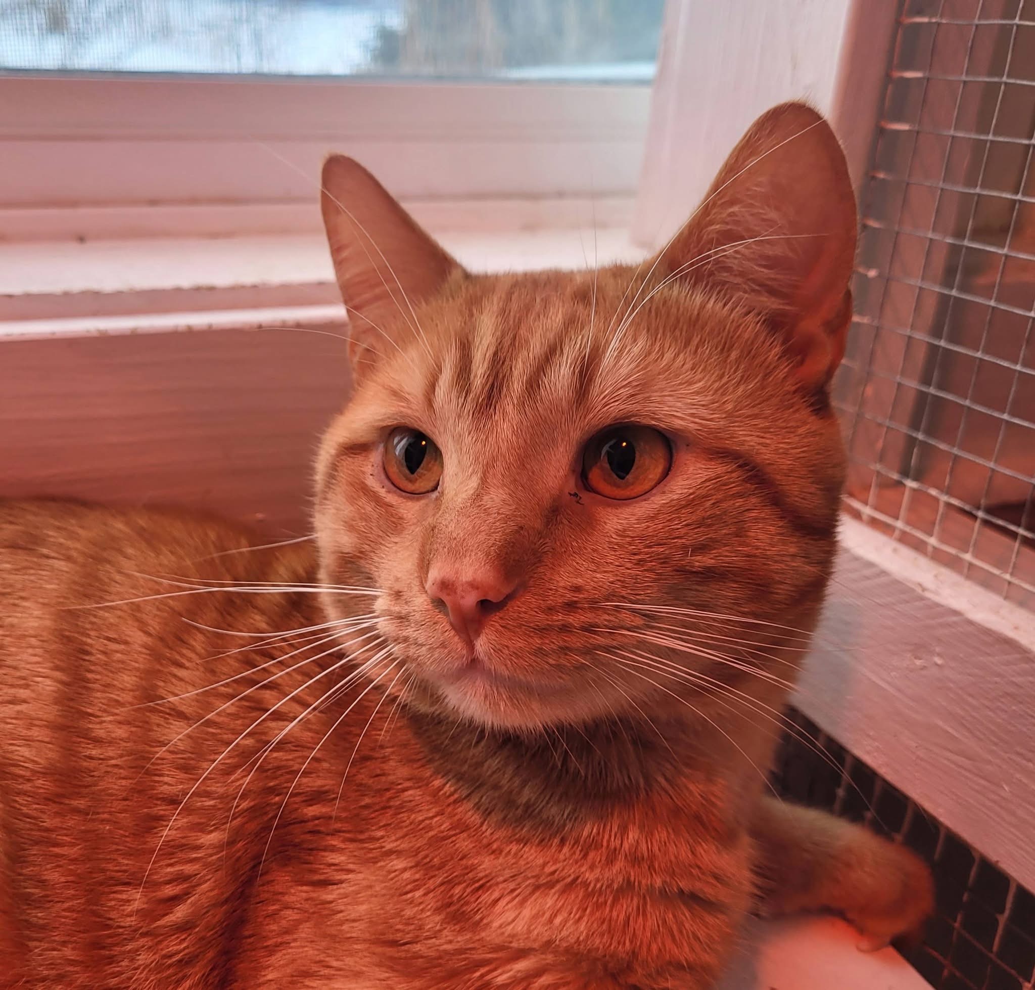 Un craquant tabby roux à poil court âgé d’environ 2 ans.