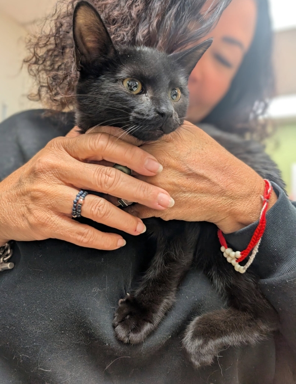 Un peu craintive au départ, elle se révèle vite très affectueuse. Elle adore jouer et profiter de moments de câlins avec ses humains.