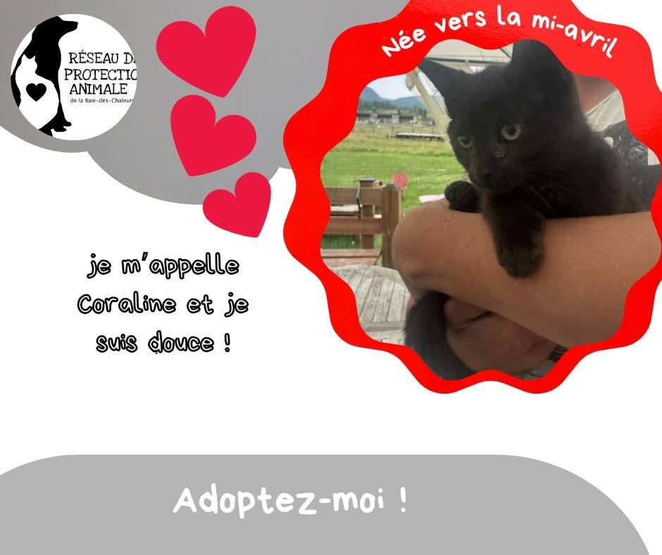 Coraline est vaccinée, vermifugée et sera stérilisée. Elle recherche sa famille pour la vie!