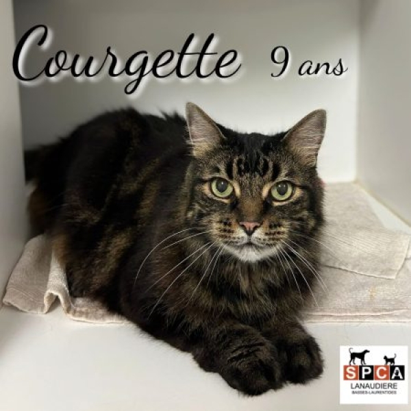 Courgette est une chatte super affectueuse et pleine de vie. Elle adore les câlins et s’entend très bien avec les autres chats. Curieuse et exploratrice, elle cherche un foyer chaleureux avec beaucoup d’amour à lui offrir.