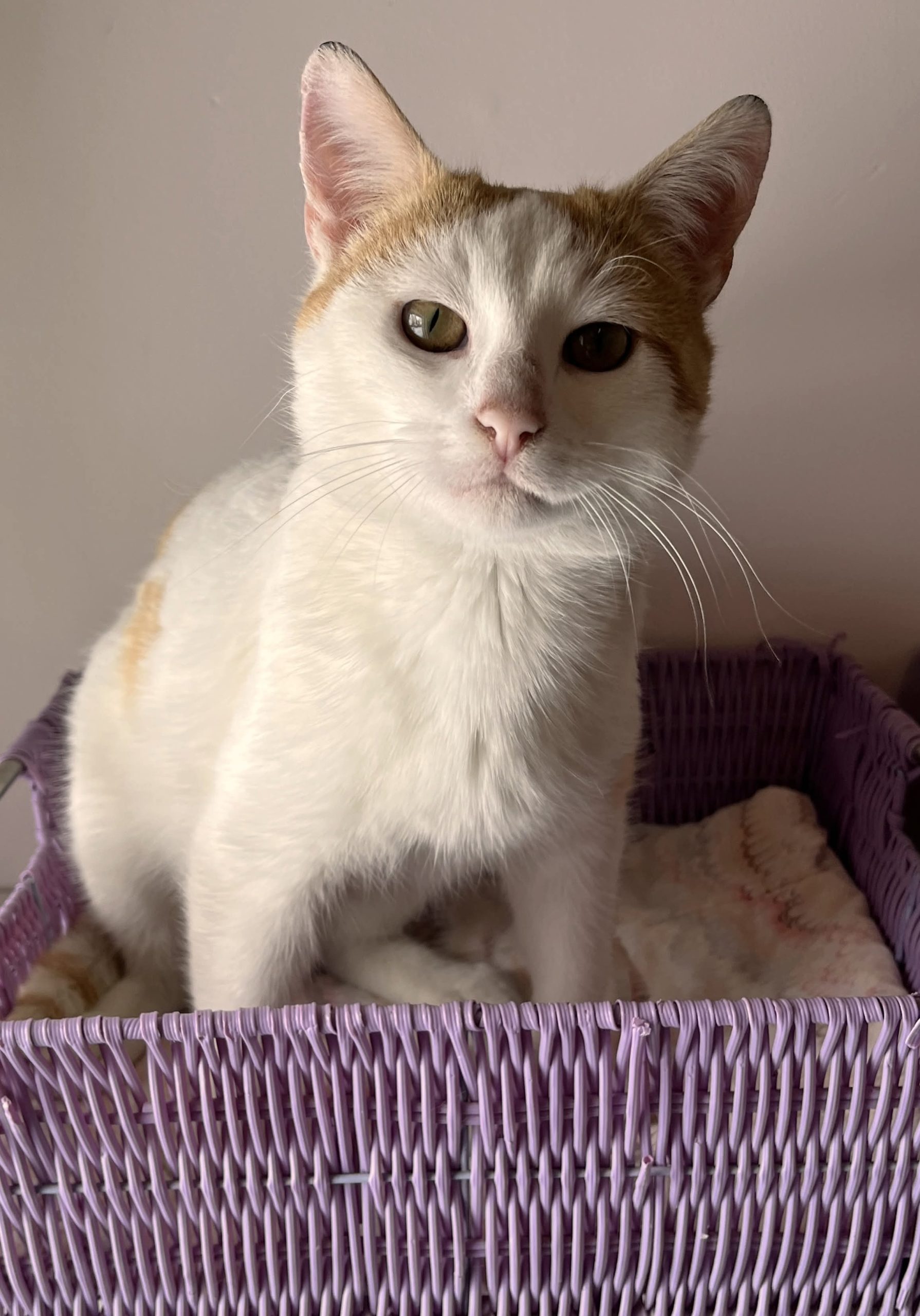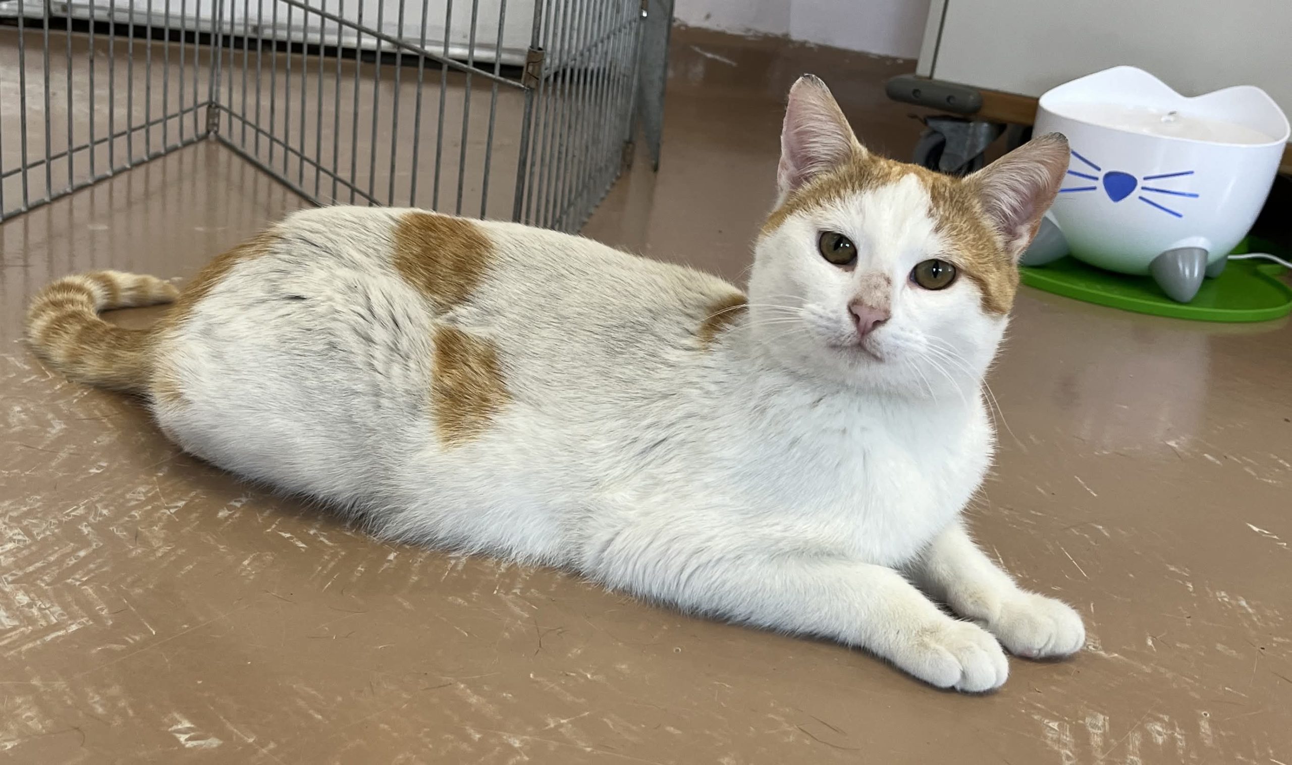Creamsicle est un ravissant minet en très bonne santé. Il saura vous séduire avec son attrayant pelage roux et blanc qui se termine par une belle queue tigrée, son adorable petit nez rose et ses magnifiques yeux ambrés au regard intense et conquérant.