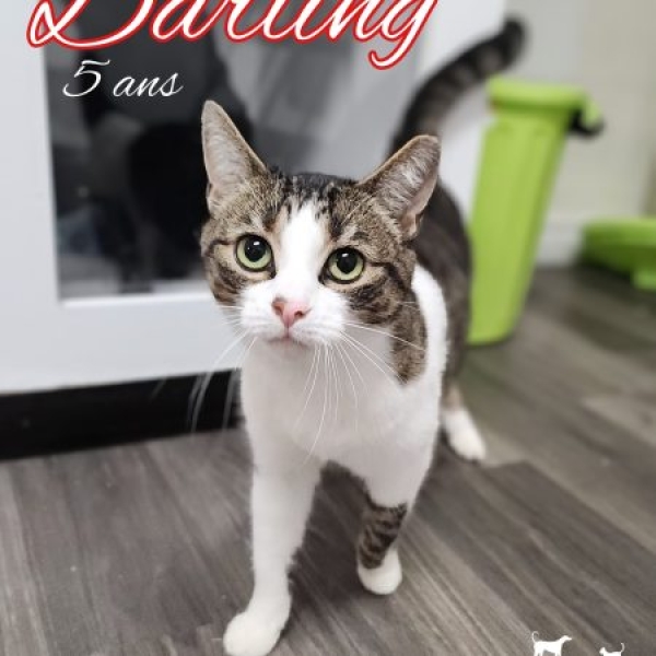 Darling semble bien apprécier la compagnie d’autres chats et pourrait s’épanouir auprès d’enfants doux qui respectent son rythme. Avec une bonne introduction, elle pourrait aussi s’habituer à la présence d’un chien calme.