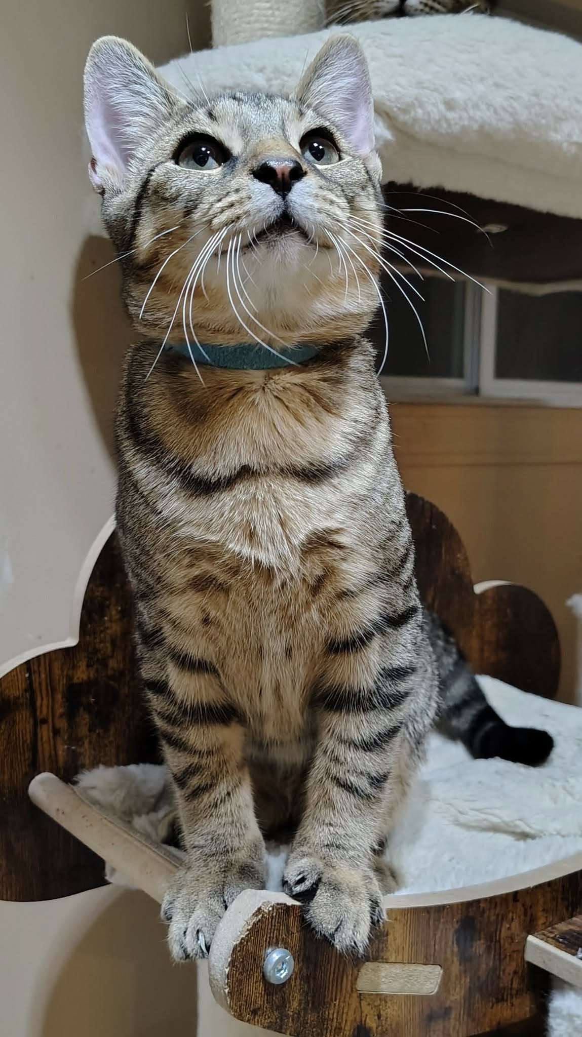 C’est une petite fille douce et calme qui aura besoin d’un ami félin avec elle. Ce qui serait vraiment merveilleux pour elle, c’est de se faire adopter avec son demi-frère Baptiste. Il la prend dans ses bras et lui fait un lavage complet avant de s’endormir bien collé au chaud.