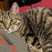 Comme sa sœur Salem, Dodu s’est habitué à son nouvel environnement après de longues séances de jeu et beaucoup de gâteries. Il suffit de dire « minouche! » pour qu’il se précipite vers le garde-manger et réclame sa récompense. Il a aussi un faible pour le beurre d’arachides et attend patiemment sa petite dose matinale.