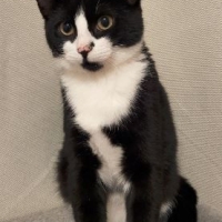 Emma, avec son manteau de smoking formel, est magnifique. Emma est actuellement dans une famille d’accueil où elle reçoit quelqu’un qui travaille ponctuellement sur la socialisation, avec beaucoup d’amour et d’attention. La maman d’accueil écrit : ‘Emma est une jeune chaton sensible, un peu timide, mais non agressive. Elle s’échauffe rapidement. Elle a fait des progrès depuis qu’elle est avec nous. Elle apprend que jouer peut être amusant. Elle adore être en compagnie des autres chatons.