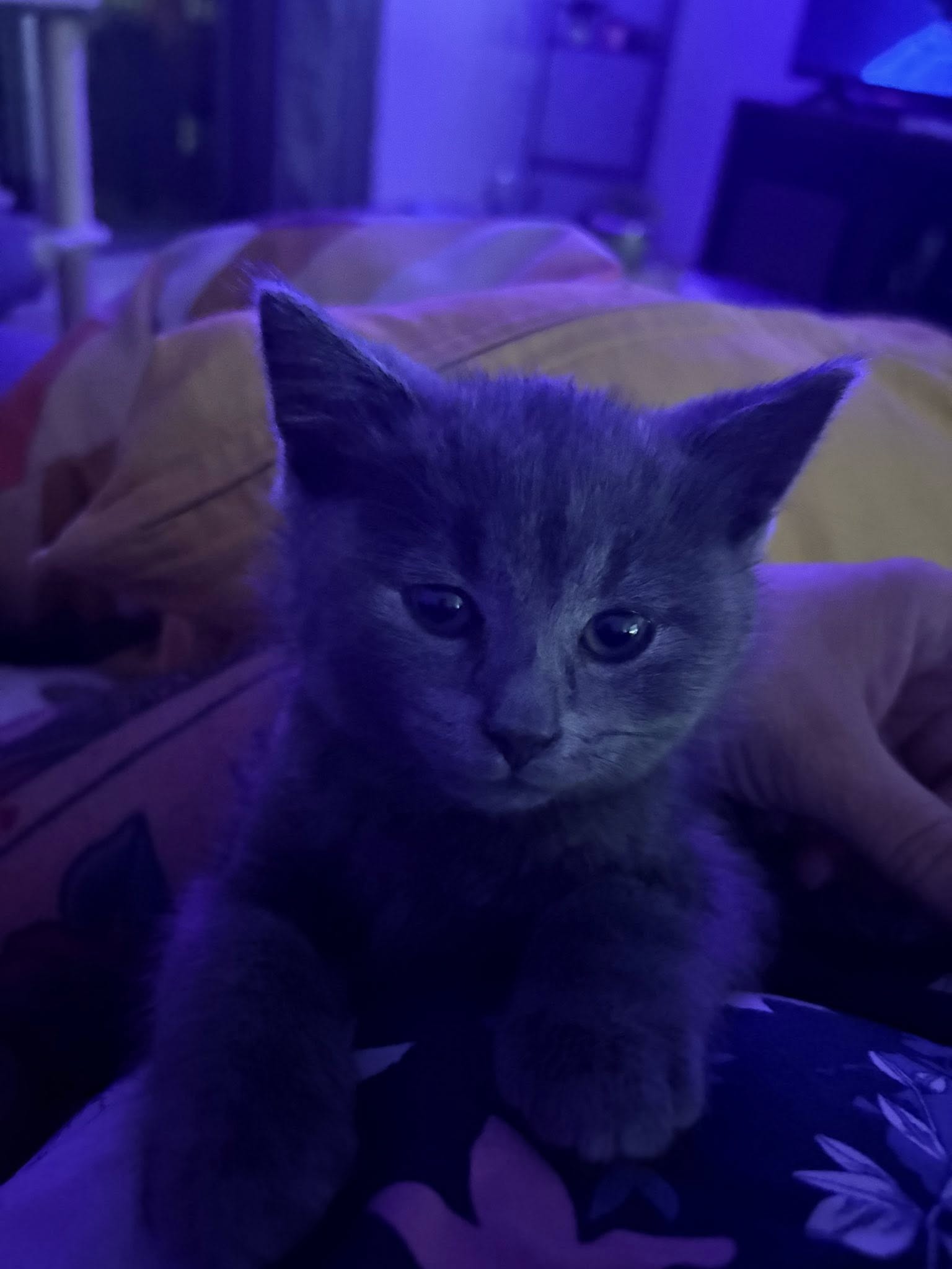 « Je me nomme Ficello, je suis très curieux et rien de m’arrête! Je suis l’un des plus grands joueurs de la portée et j’aime les jouets qui traînent un peu partout. J’adore les caresses, si je trouve un bout de peau, je m’endormirai assurément au chaud près de vous. Au plaisir de vous rencontrer! »