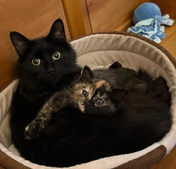 Flora a donné naissance à 3 chatons dans la plate-bande d’une très gentille dame qui a alerté le refuge.