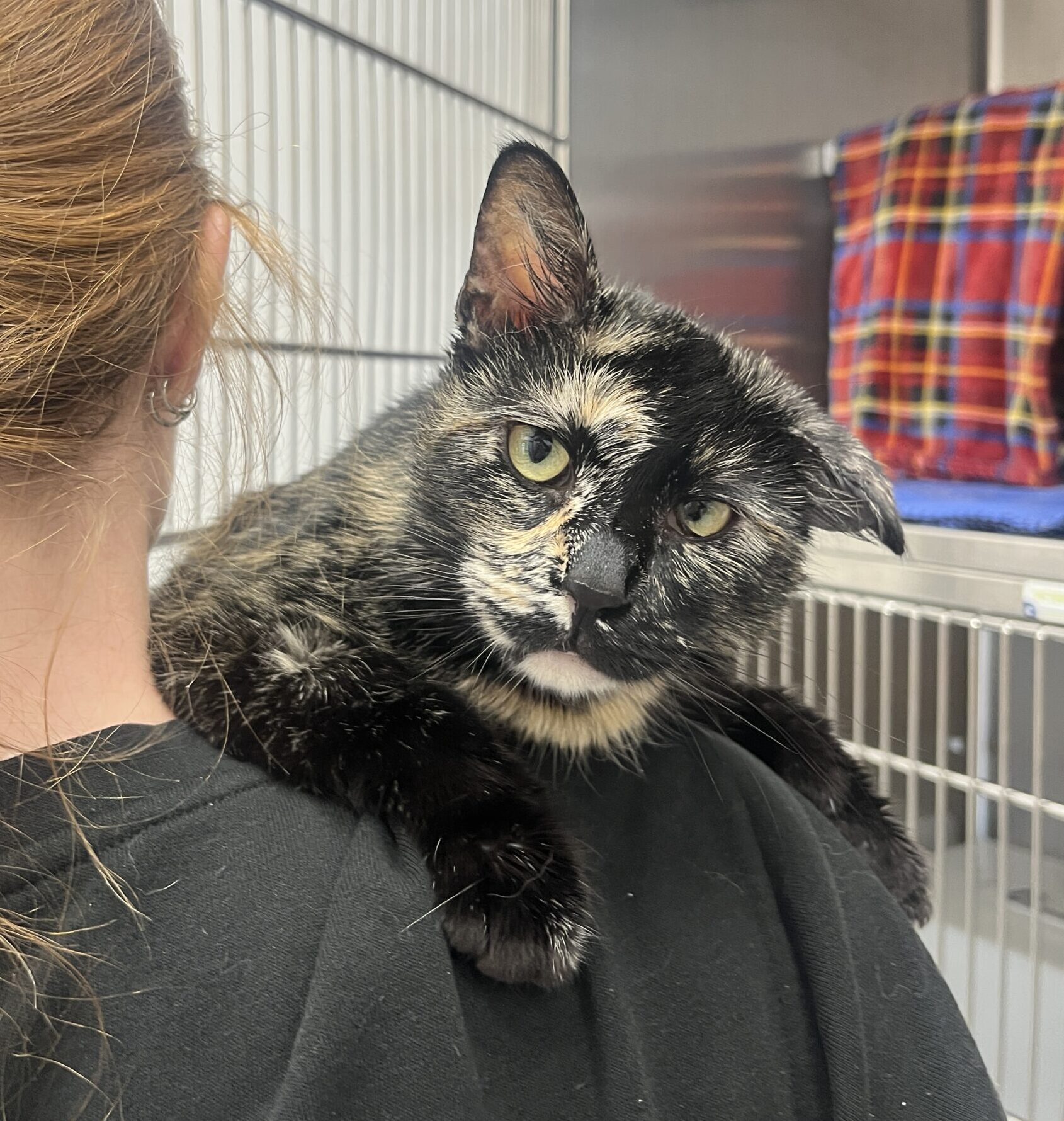 C’est une chatte très affectueuse avec les humains, elle aime se faire prendre et gratouiller!