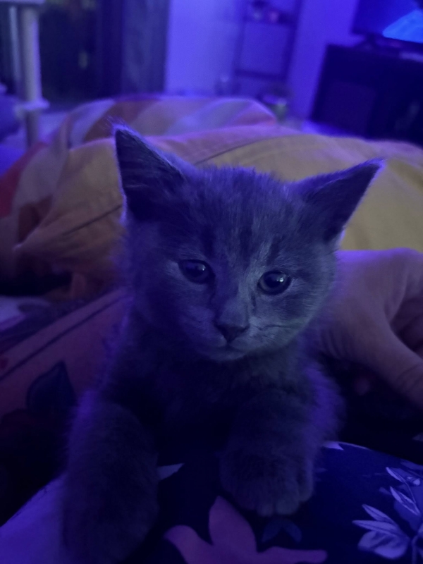 Le beau Gabriel est un chaton gris qui ne passe pas inaperçue . C’est une petite boule d’énergie. Il est super joueur. Il cohabite avec d’autres chats et n’a aucun problème avec eux . Il ronronne lorsqu’il est dans nos bras.